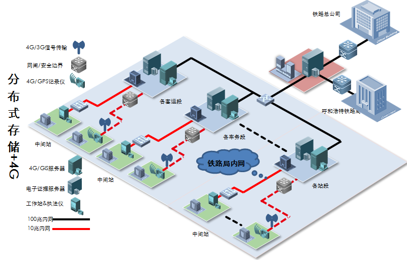 鑒于鐵路局各站點(diǎn)分散、網(wǎng)絡(luò)條件有限的實(shí)際情況,本項(xiàng)目采用4G實(shí)施回傳方案,在實(shí)時(shí)做好現(xiàn)場(chǎng)記錄的同時(shí)可實(shí)現(xiàn)數(shù)據(jù)上傳,具體方案如下:
