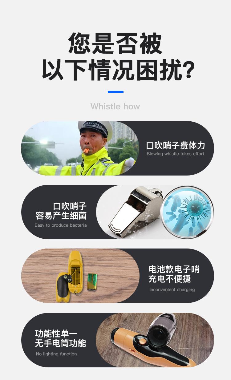電子口哨采用提高航空鋁合金材質(zhì),耐用堅固;可以超遠指向性傳聲,效果優(yōu)于傳統(tǒng)口哨的發(fā)聲,更具有指向性,電池采用充電鋰電池,解決了電池問題,廣泛用于交巡警、特警等,是一種新型的警用裝備。